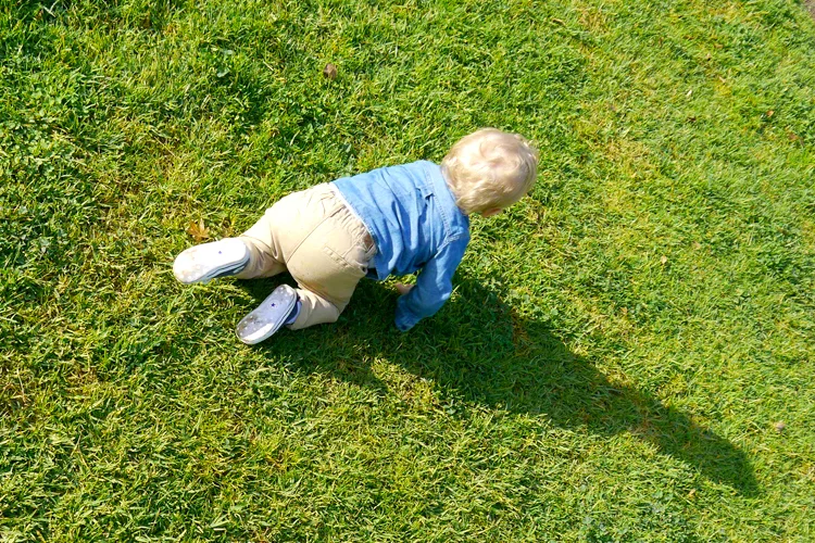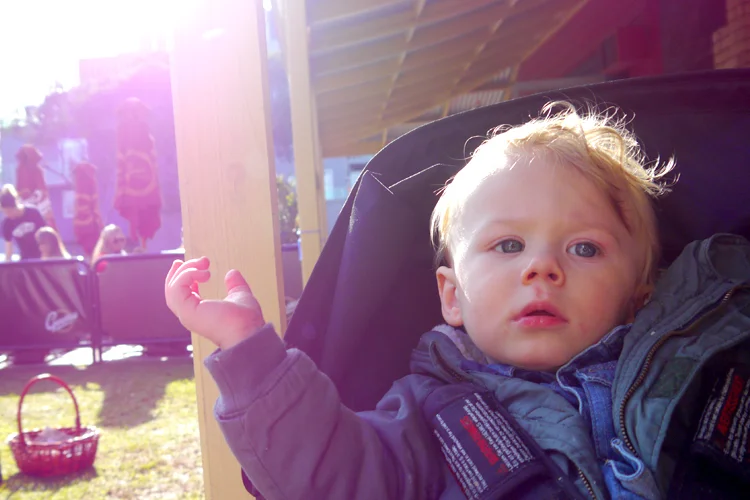 It was a crisp morning but the sun was out, and despite managing to scratch his face with a mystery object, Austin was in a good mood. And not only that, the little man had graced us with his first steps a few days earlier, so he was both happy and antsy at the same time trying to wiggle out of my hold and hating life in the pram. He wants to be FREEEEE (run Forrest, run).